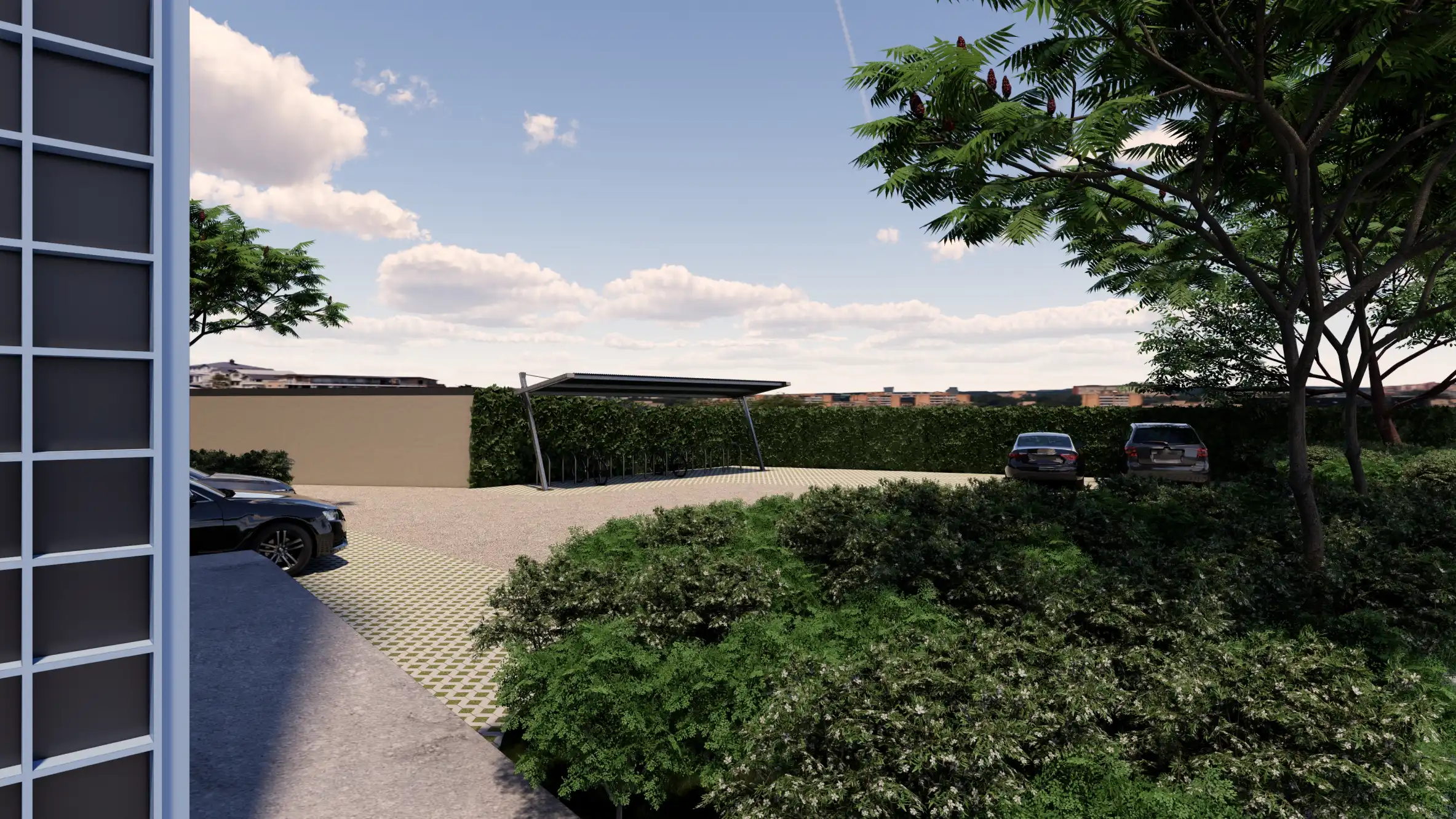 Aan het gebouw zijn een beperkt aantal los/laadplaatsen voorzien voor huurders en bezoekers. Verder zijn er 2 oplaadpunten voor elektrische wagens en fietsparkeerplaatsen voorzien.